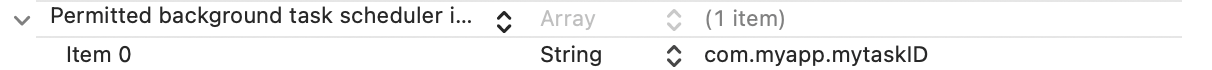 under key for array BGTaskSchedulerPermittedIdentifiers